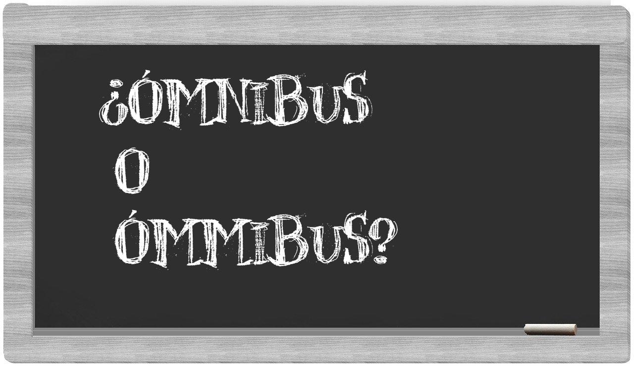 Cuando se presente la elección entre los términos ómnibus y ómmibus, no hay motivo para titubear, puesto que únicamente ómnibus es la forma adecuada y aceptada; del contrario, ómmibus carece de reconocimiento en el prestigioso Diccionario de la Real Academia Española.