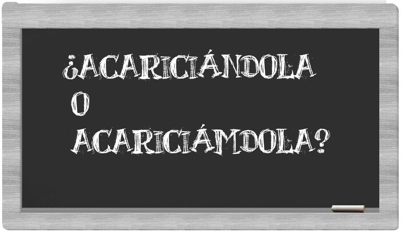 Cuando se trata del dilema entre las expresiones acariciándola y acariciámdola, es vital que tengas claridad, porque únicamente acariciándola es la que se encuentra correctamente formulada. La palabra acariciámdola no figura en el Diccionario de la Real Academia Española.