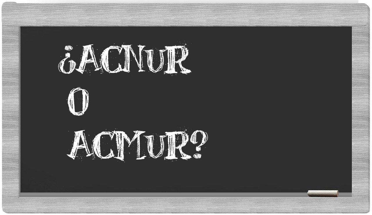 Cuando se trata de la relación entre acnur y acmur, la decisión es clara y no debería generar incertidumbre, puesto que únicamente acnur es la que se encuentra registrada de manera adecuada. En cambio, acmur no se halla en el reconocido Diccionario de la Real Academia Española.