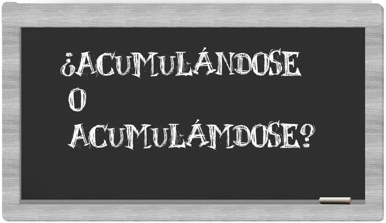 En la situación específica que involucra los términos acumulándose y acumulámdose, no deberías titubear, puesto que únicamente acumulándose se encuentra correctamente redactado. El término acumulámdose no figura en el léxico del Diccionario de la Real Academia Española.