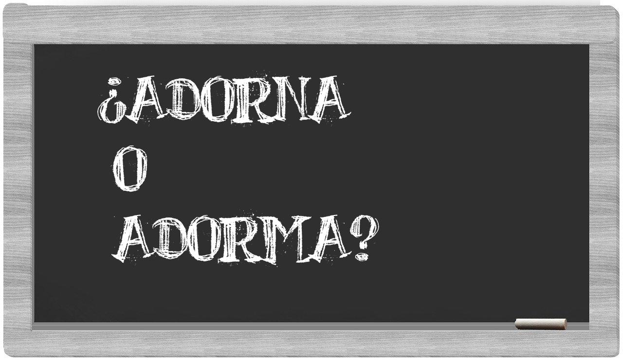 Cuando se presenta la situación particular entre los términos adorna y adorma, la elección debería ser clara y sin titubeos, puesto que únicamente adorna se encuentra correctamente formulada. Por otro lado, adorma no se halla registrado en el Diccionario de la Real Academia Española.
