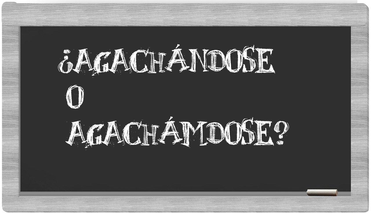 1. Gerundio de  agachar  o de  agacharse , con el pronombre «se» enclítico . Relacionado: agachando . Uso: admite doble sintaxis: «se están agachando» o «están agachándose».
