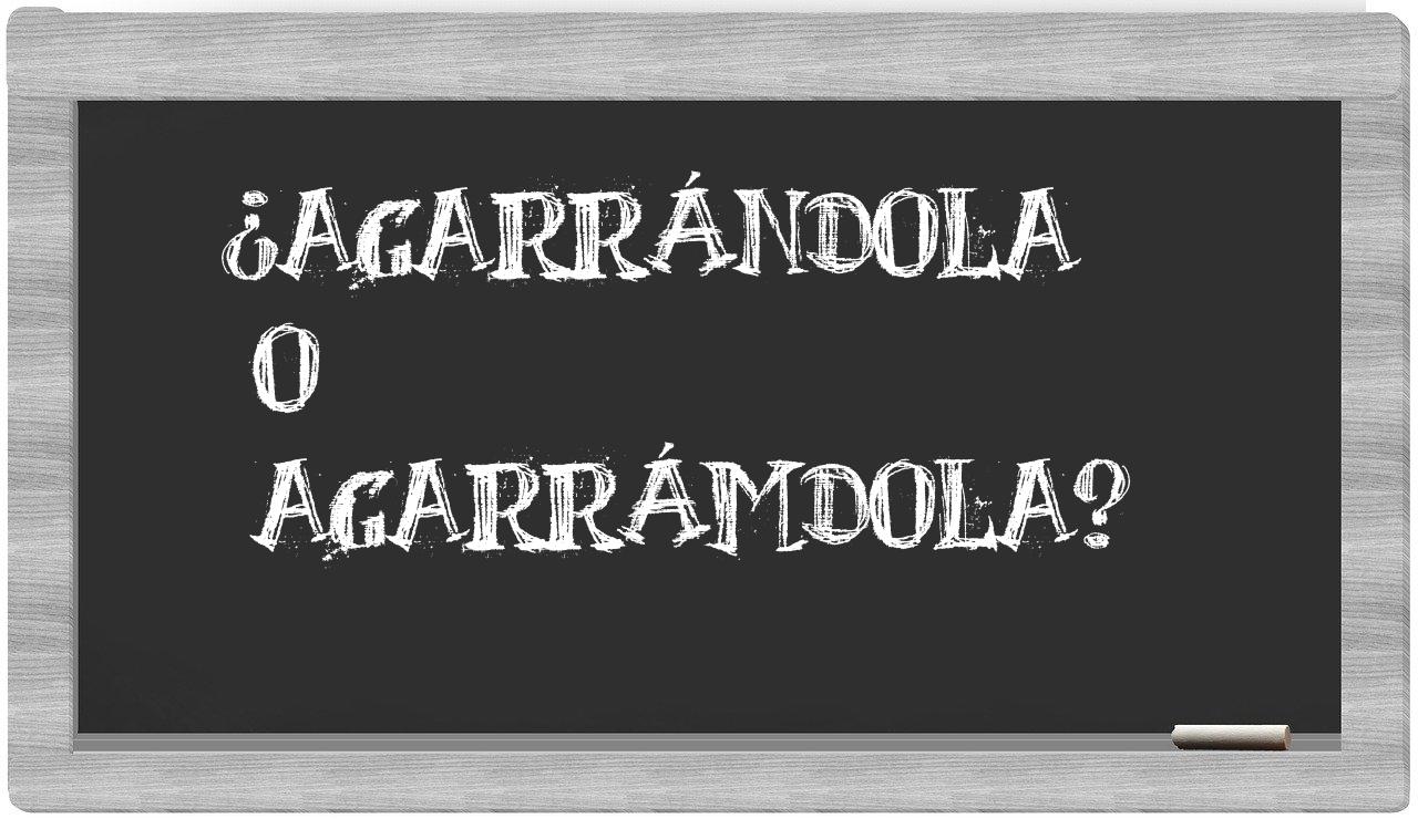 A la hora de discernir entre agarrándola y agarrámdola, no caben dudas en tu mente, puesto que únicamente agarrándola se presenta como la opción correcta. Por otro lado, agarrámdola carece de reconocimiento en el Diccionario de la Real Academia Española.