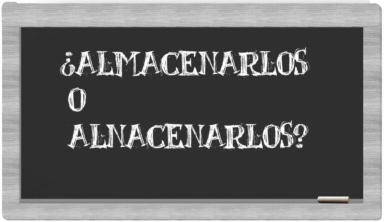 Cuando se presenta la disyuntiva entre almacenarlos y alnacenarlos, la elección debe ser clara, porque solo almacenarlos es la forma adecuada; de hecho, alnacenarlos no se encuentra en el prestigioso Diccionario de la Real Academia Española.