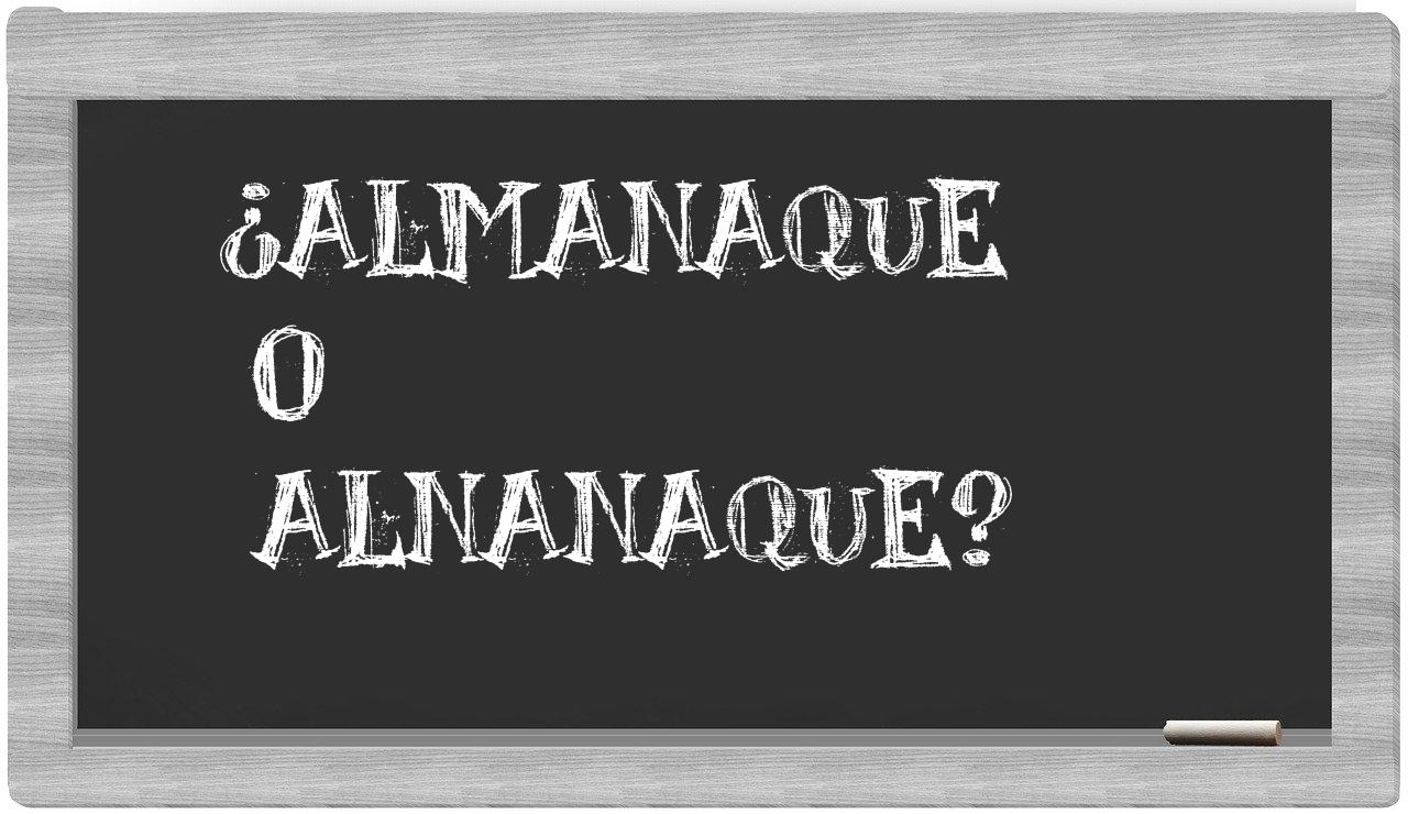 Cuando se presenta la disyuntiva entre almanaque y alnanaque, no hay lugar para la incertidumbre, pues únicamente almanaque se encuentra adecuadamente redactada; por su parte, alnanaque no figura en el prestigioso Diccionario de la Real Academia Española.