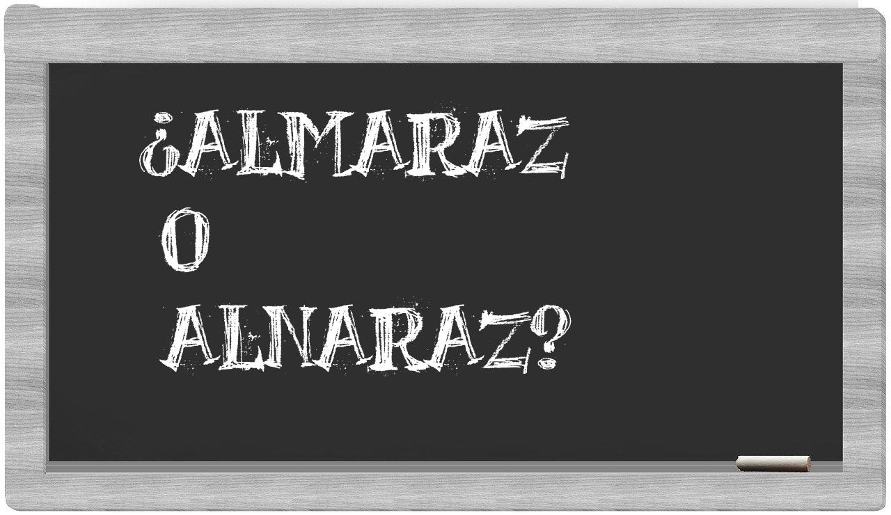 Cuando se trata de la elección entre almaraz y alnaraz, no hay lugar para la incertidumbre, puesto que únicamente almaraz es la forma adecuada. La palabra alnaraz, por su parte, no figura en el repertorio del Diccionario de la Real Academia Española.