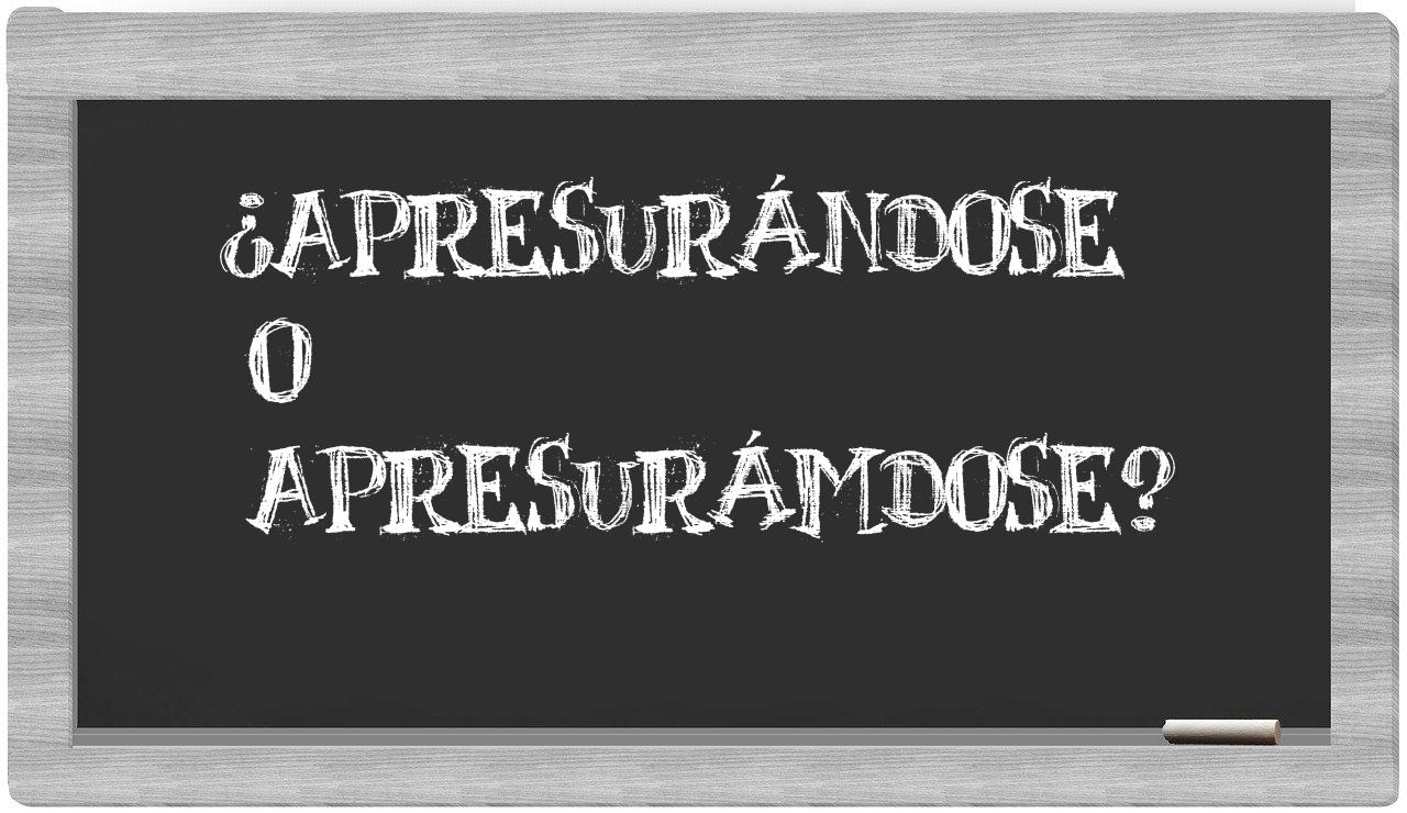 1. Gerundio de  apresurar  o de  apresurarse , con el pronombre «se» enclítico . Relacionado: apresurando . Uso: admite doble sintaxis: «se están apresurando» o «están apresurándose».