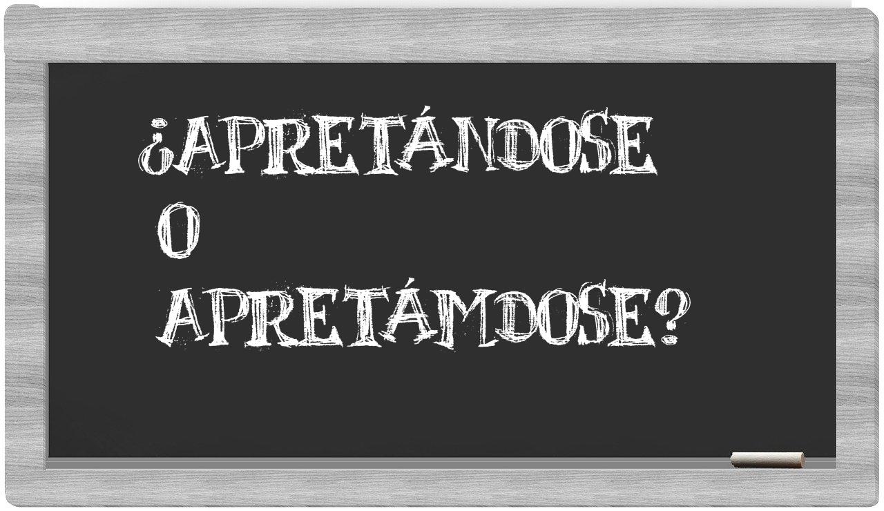 1. Gerundio de  apretar  o de  apretarse , con el pronombre «se» enclítico .