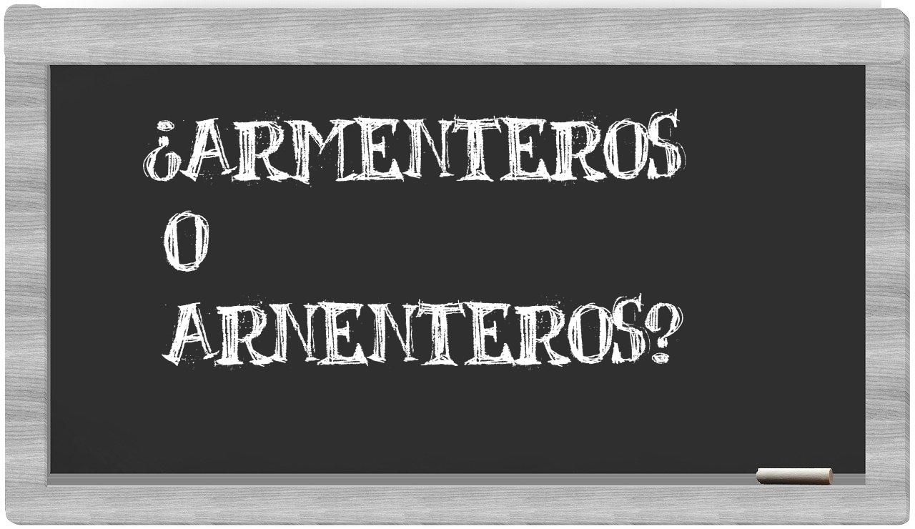 En la situación específica al comparar los términos armenteros y arnenteros, no deberías titubear, puesto que únicamente armenteros es la forma correcta; el término arnenteros no se encuentra registrado en el Diccionario de la Real Academia Española.