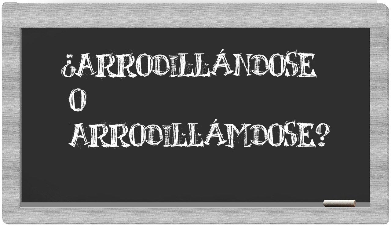 Cuando se presente la situación en la que debas elegir entre arrodillándose y arrodillámdose, no lo pienses dos veces, pues únicamente arrodillándose es la opción correcta. Recuerda que arrodillámdose no se encuentra registrado en el Diccionario de la Real Academia Española.