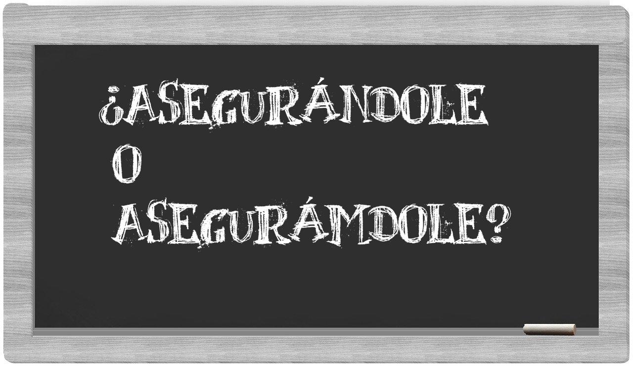 Cuando te encuentres en la situación de elegir entre asegurándole y asegurámdole, no vaciles ni un instante, ya que solo asegurándole es la opción correcta; lamentablemente, asegurámdole no figura en el Diccionario de la Real Academia Española.