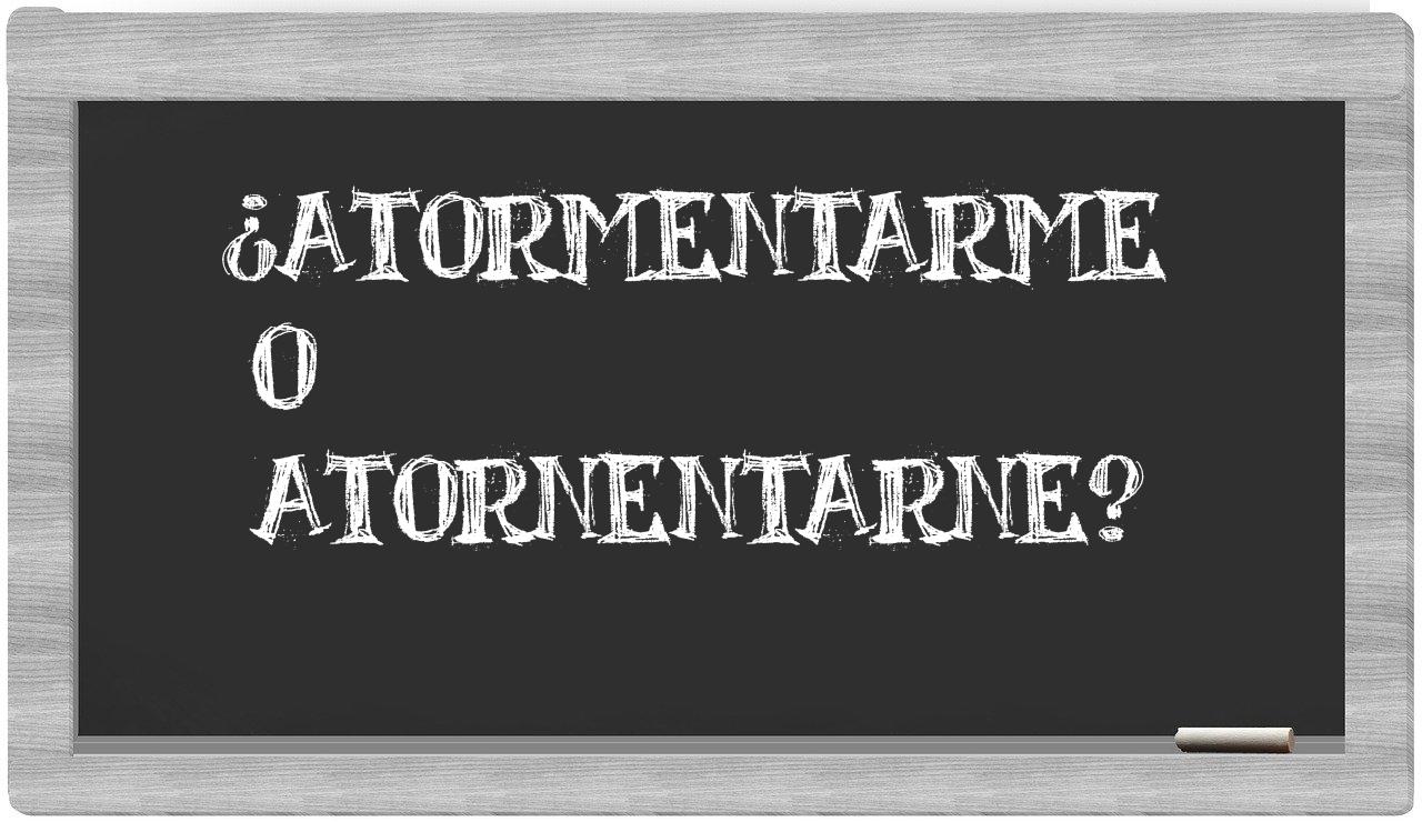 En la situación particular que involucra los términos atormentarme y atornentarne, no deberías titubear, puesto que únicamente atormentarme se encuentra correctamente redactado. En contraste, atornentarne no se halla registrado en el Diccionario de la Real Academia Española.