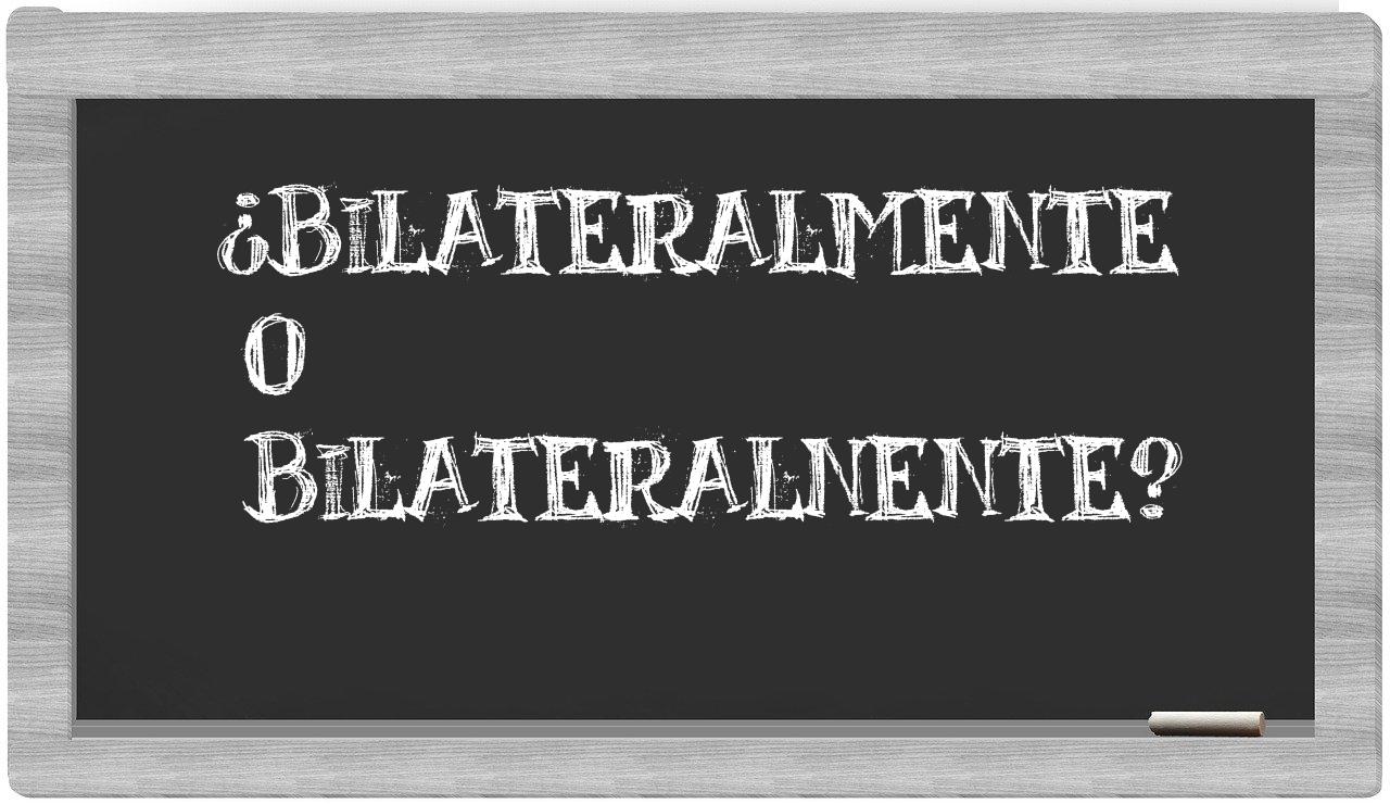 En la situación específica que enfrentan los términos bilateralmente y bilateralnente, no deberías titubear ni por un instante, porque solo bilateralmente se encuentra correctamente redactada, mientras que bilateralnente no figura en el vocabulario de la Real Academia Española.