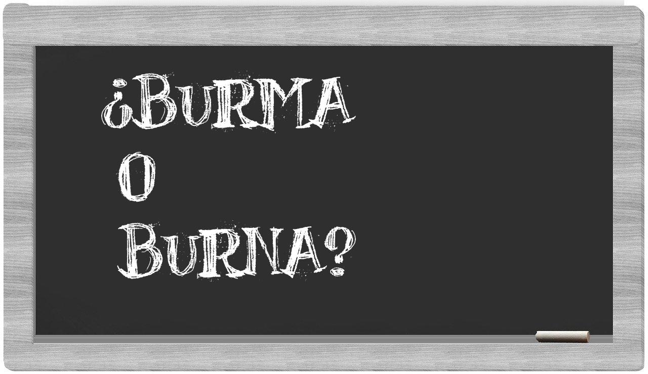 En la situación específica al comparar los términos burma y burna, no deberías titubear, puesto que únicamente burma es la forma correcta; el término burna no se encuentra registrado en el Diccionario de la Real Academia Española.