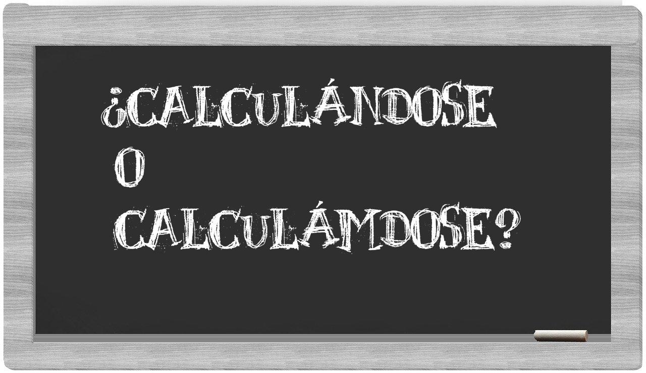 Cuando se presenta la elección entre calculándose y calculámdose, no deberías titubear, ya que únicamente calculándose es el término que se encuentra correctamente escrito. Por otro lado, calculámdose no se encuentra registrado en el Diccionario de la Real Academia Española.