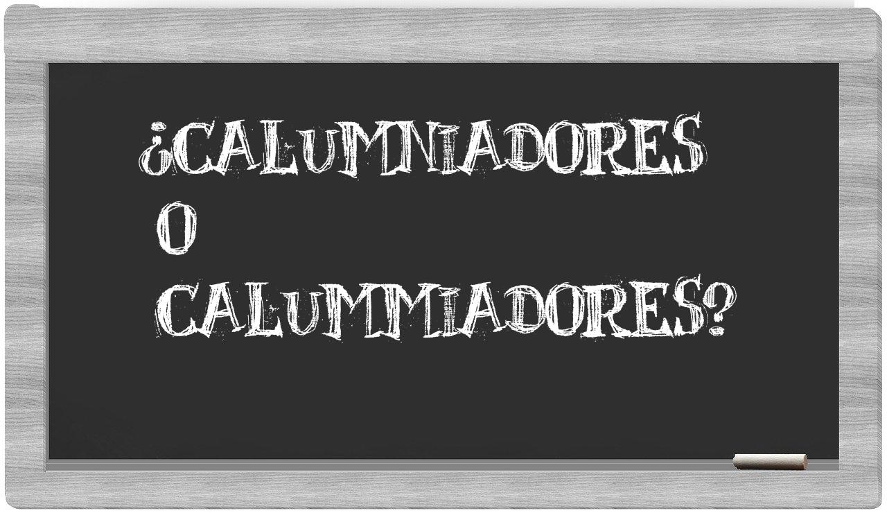 Cuando se trata de las palabras calumniadores y calummiadores, no hay lugar para la incertidumbre, pues únicamente calumniadores es la que se encuentra adecuadamente redactada. Por otro lado, calummiadores no figura en el Diccionario de la Real Academia Española.