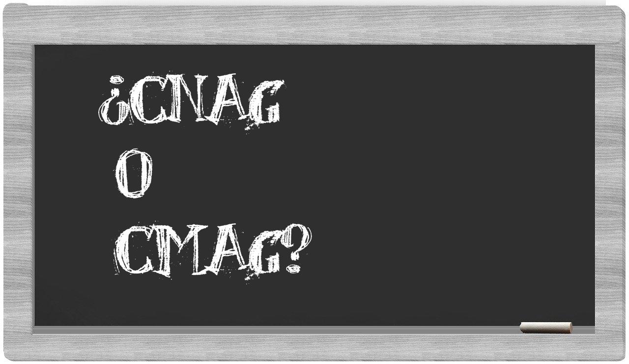 Cuando pienses en la relación entre cnag y cmag, no pierdas la confianza, pues solo cnag es la opción que se encuentra bien redactada. Por otro lado, cmag no figura en el registro de la Real Academia Española.