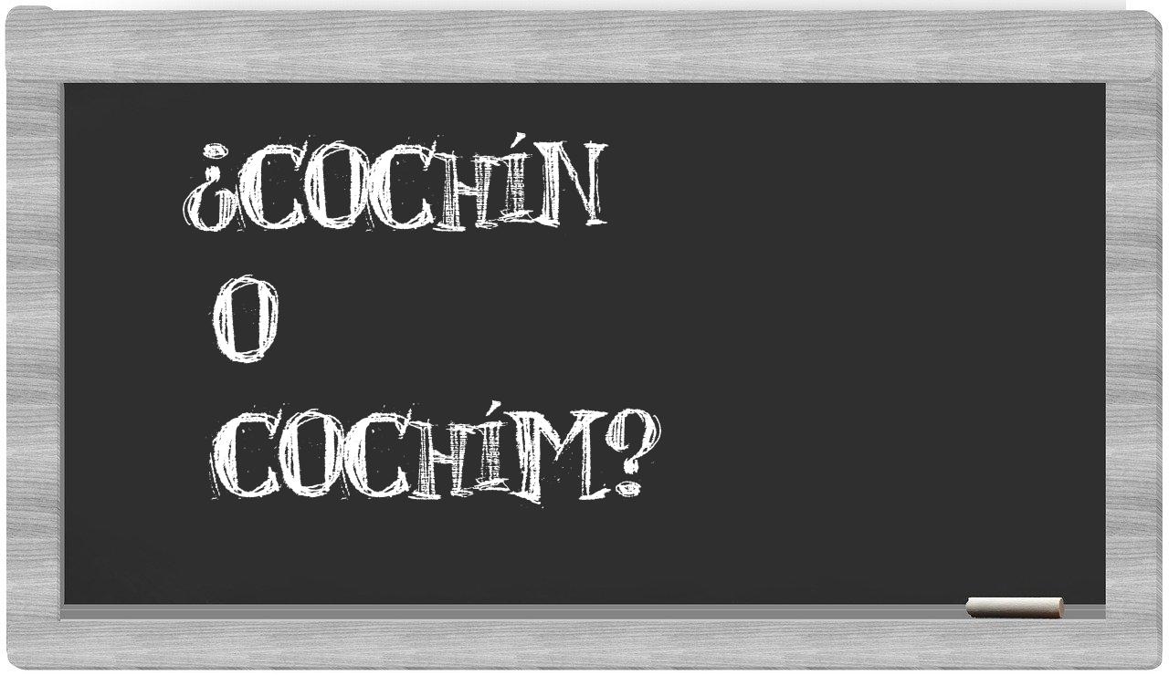 Respecto a la relación específica entre los términos cochín y cochím, no deberías tener titubeos, puesto que únicamente cochín se encuentra debidamente registrada. El término cochím no figura en el Diccionario de la Real Academia Española.