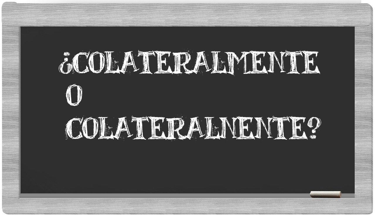 Cuando se trata de la distinción entre colateralmente y colateralnente, la certidumbre debería guiarte, puesto que únicamente colateralmente se encuentra correctamente redactada. Por otro lado, colateralnente no figura en el prestigioso Diccionario de la Real Academia Española.