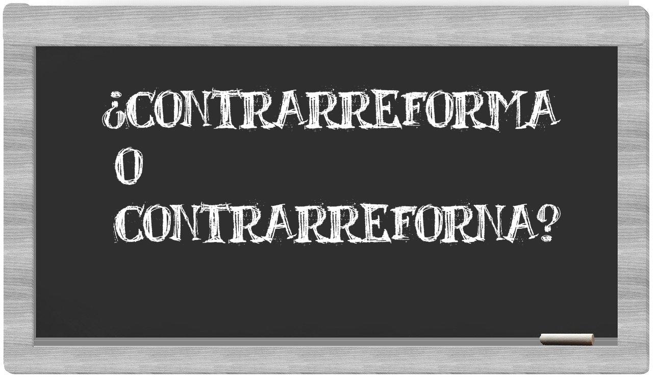 En la particular situación que involucra a las palabras contrarreforma y contrarreforna, deberías tener claridad absoluta, puesto que solo contrarreforma se encuentra correctamente redactada. Por otro lado, contrarreforna no figura en el Diccionario de la Real Academia Española.
