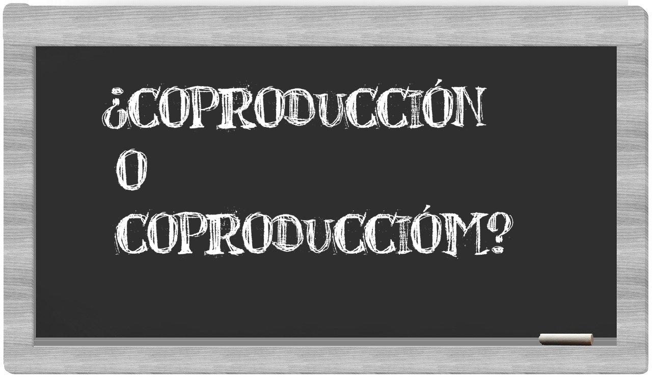 Cuando se trata de la distinción entre coproducción y coproduccióm, la certidumbre debería guiarte, puesto que únicamente coproducción se encuentra correctamente redactada. Por otro lado, coproduccióm no figura en el prestigioso Diccionario de la Real Academia Española.