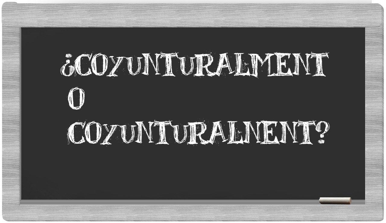 Cuando te enfrentes a las palabras coyunturalment y coyunturalnent, no debería haber lugar para la incertidumbre, porque es únicamente coyunturalment la que está registrada adecuadamente, mientras que coyunturalnent no figura en el Diccionario de la Real Academia Española.