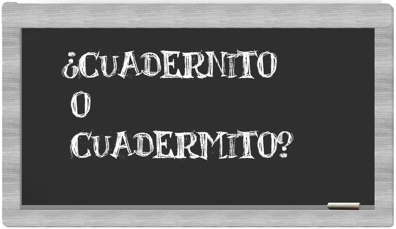 En la situación específica que involucra las voces cuadernito y cuadermito, es fundamental que no pierdas la certeza, puesto que únicamente cuadernito se presenta con la ortografía adecuada. En cambio, cuadermito no se encuentra registrada en el Diccionario de la Real Academia Española.