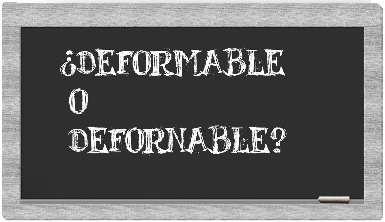 Con el fin de ayudarte a retener de manera más efectiva la escritura adecuada de deformable, hemos preparado la explicación que proporciona el diccionario sobre este término: