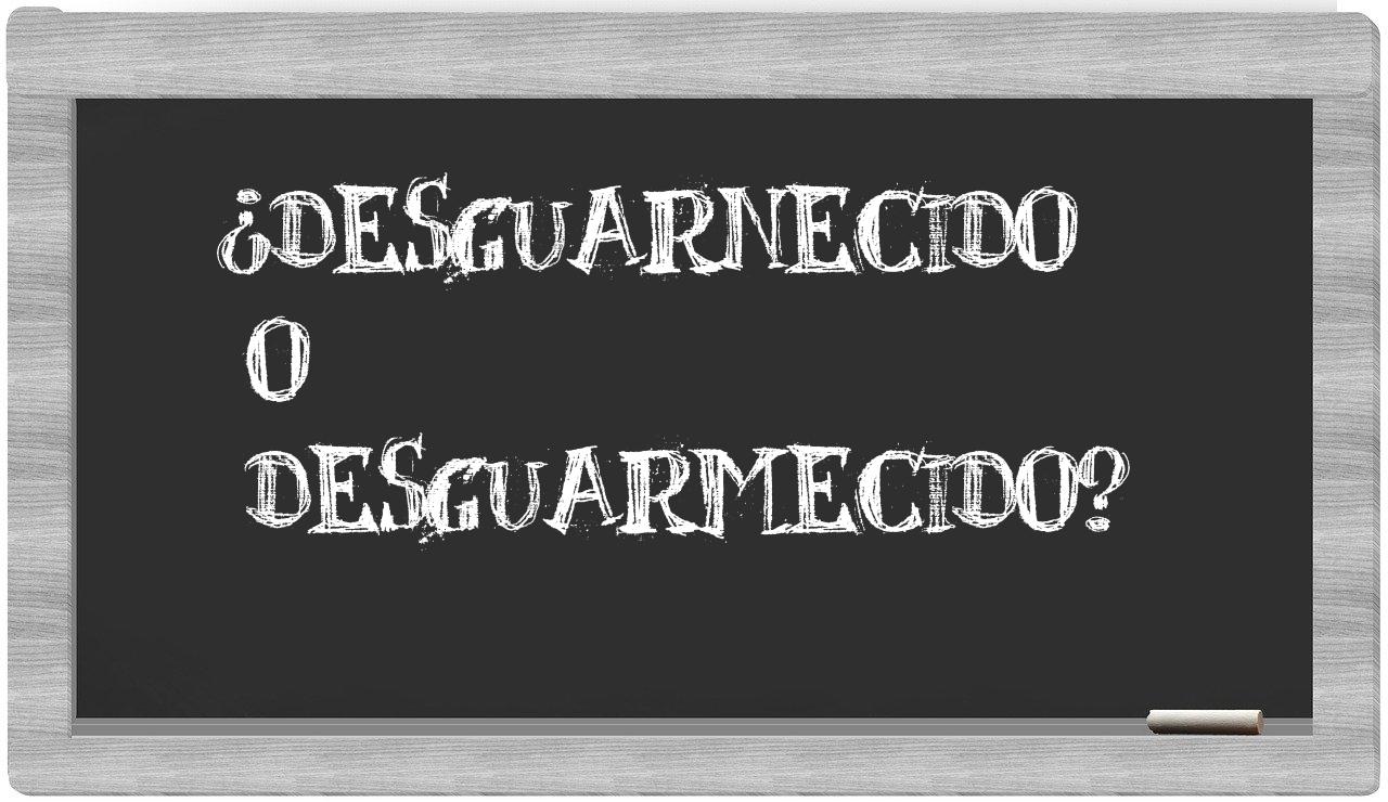 Respecto a la relación específica entre los términos desguarnecido y desguarmecido, no deberías tener titubeos, puesto que únicamente desguarnecido se encuentra debidamente registrada. El término desguarmecido no figura en el Diccionario de la Real Academia Española.