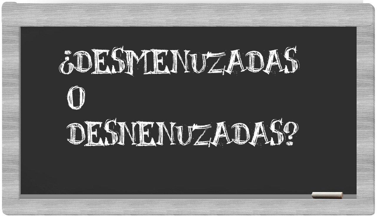 Cuando te enfrentes a la elección entre desmenuzadas y desnenuzadas, no permitas que la incertidumbre te abrume, porque solo desmenuzadas se encuentra debidamente registrada en el Diccionario de la Real Academia Española, mientras que desnenuzadas carece de tal reconocimiento.