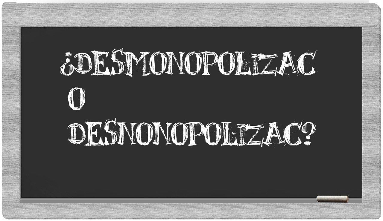 En la situación particular que involucra a desmonopolizac y desnonopolizac, no deberías titubear, puesto que únicamente desmonopolizac se encuentra correctamente formulada. Por otro lado, desnonopolizac carece de reconocimiento en el Diccionario de la Real Academia Española.