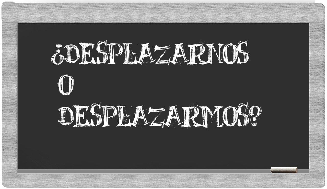 Cuando te enfrentes a la elección entre desplazarnos y desplazarmos, no permitas que la incertidumbre te abrume, pues únicamente desplazarnos es la forma adecuada. Recuerda que desplazarmos no se encuentra en el prestigioso Diccionario de la Real Academia Española.