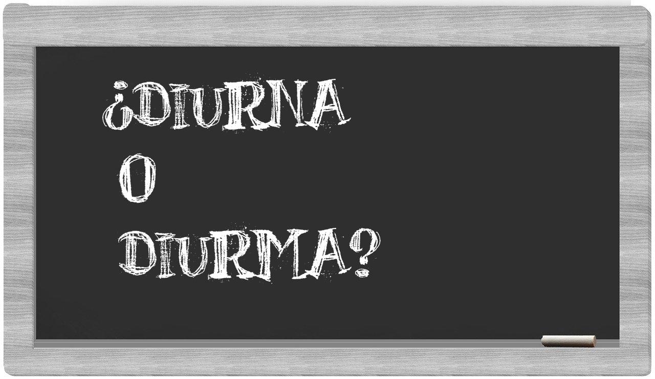 En la situación específica al comparar los términos diurna y diurma, no deberías titubear, puesto que únicamente diurna es la forma correcta; el término diurma no se encuentra registrado en el Diccionario de la Real Academia Española.