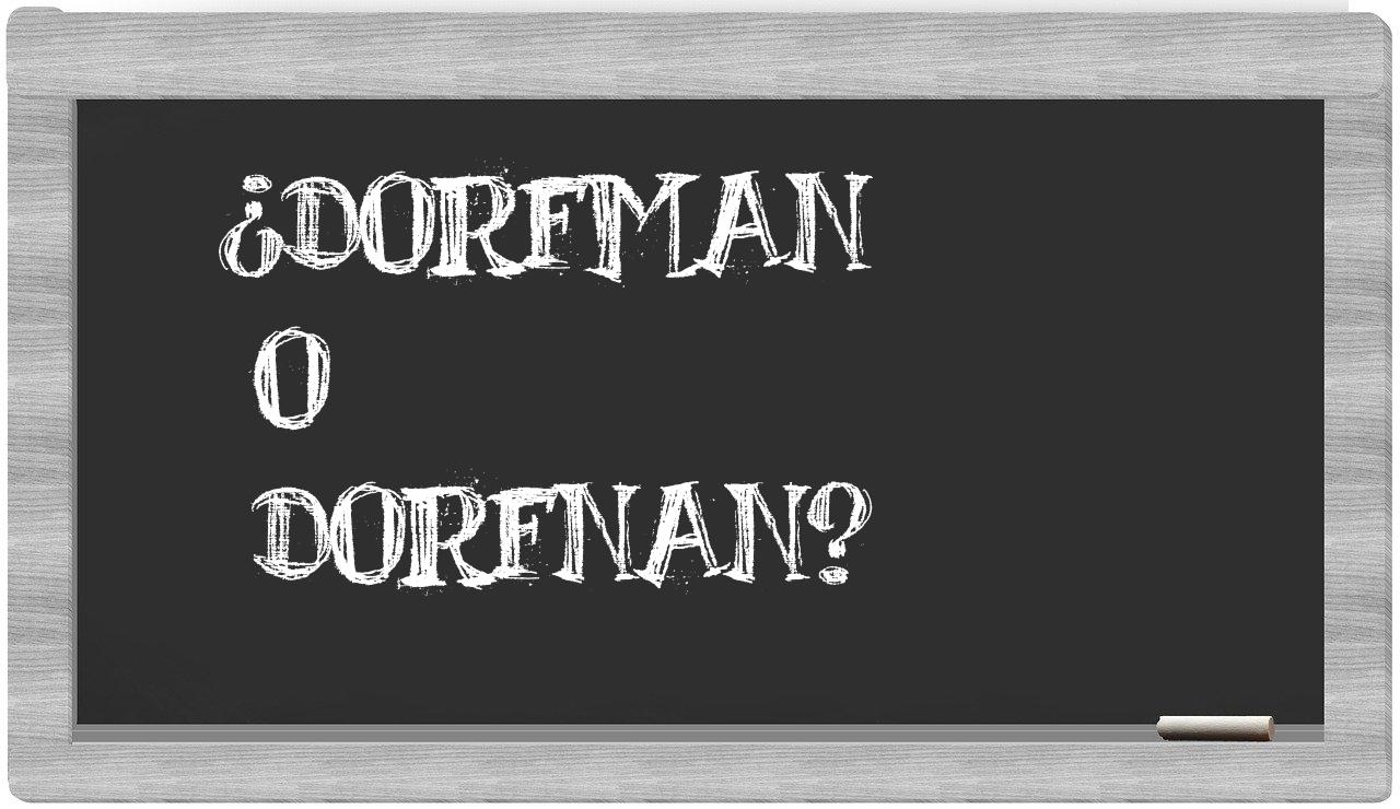 En la particularidad de la relación entre los términos dorfman y dorfnan, no deberías titubear en ningún momento, puesto que únicamente dorfman se encuentra correctamente plasmada. La forma dorfnan está ausente del Diccionario de la Real Academia Española.