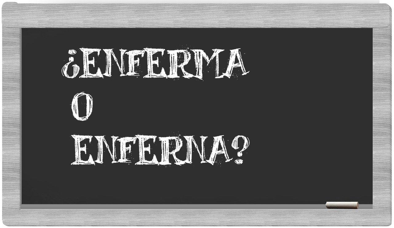 En la situación particular que se presenta entre los términos enferma y enferna, es fundamental que no vaciles, puesto que únicamente enferma se encuentra correctamente redactado. Por otro lado, enferna no figura en el Diccionario de la Real Academia Española.