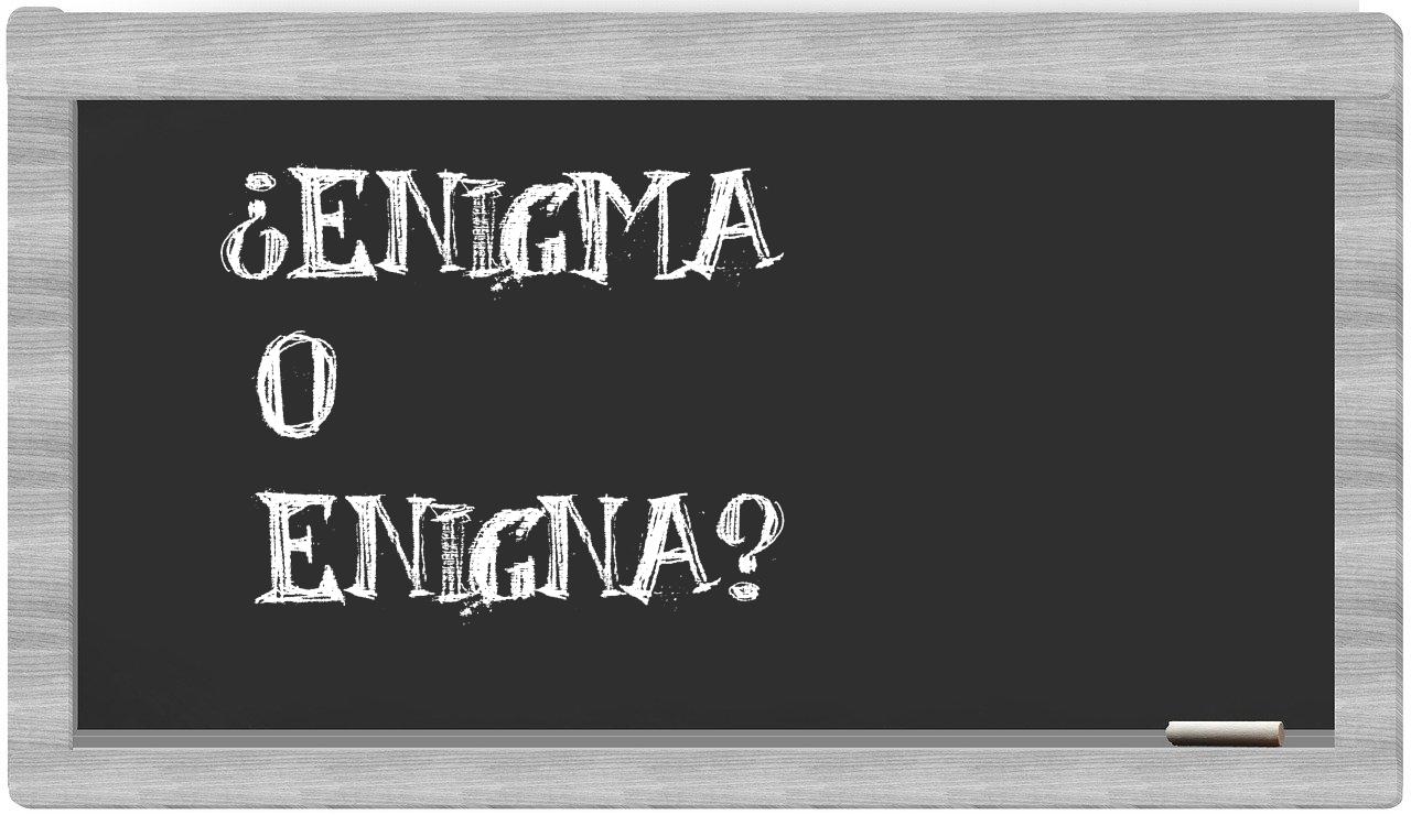 Cuando se trata de distinguir entre enigma y enigna, no cabe la menor incertidumbre, puesto que únicamente enigma se encuentra de manera adecuada en la terminología oficial, mientras que enigna no tiene cabida en el prestigioso Diccionario de la Real Academia de la Lengua.