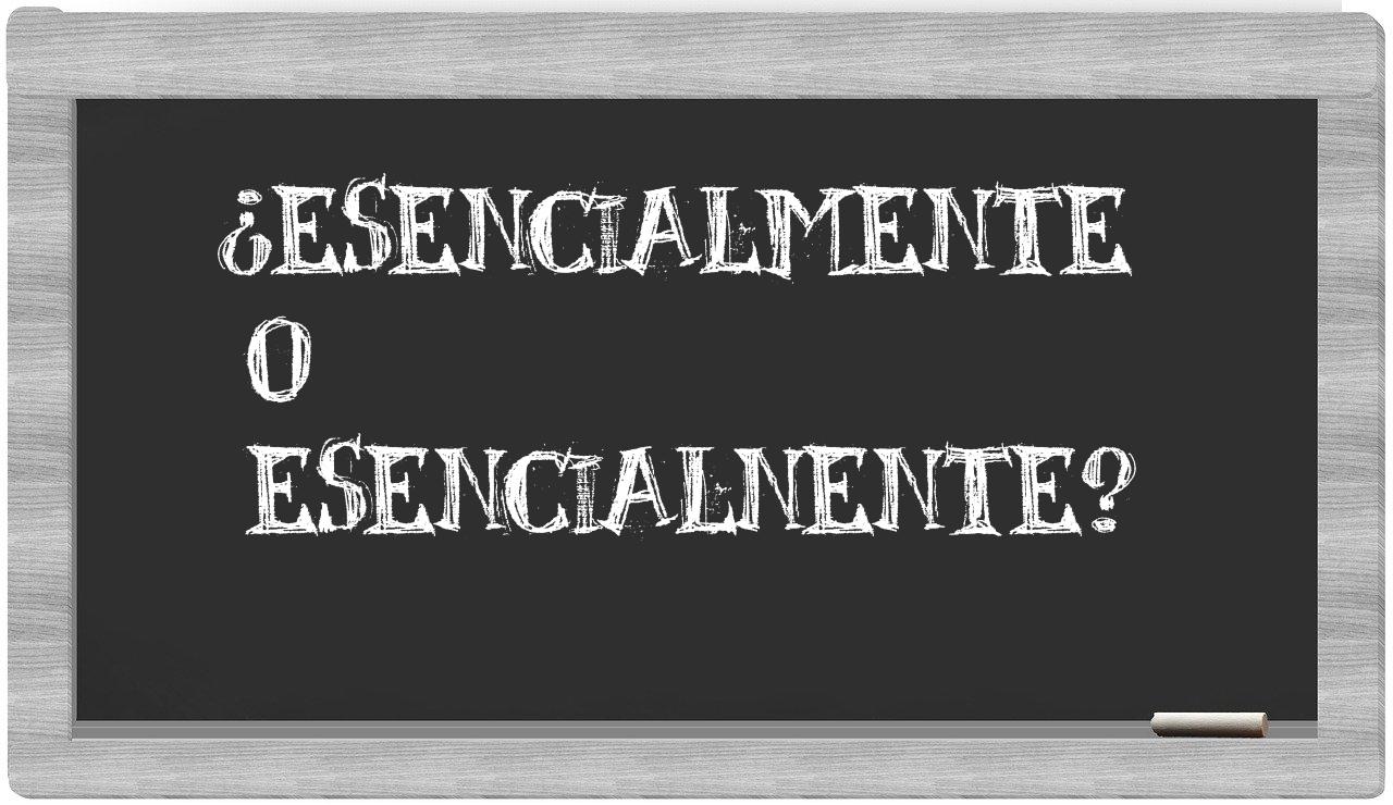 Cuando se trata de la comparación entre el término esencialmente y la palabra esencialnente, es fundamental que no vaciles, pues únicamente esencialmente se halla correctamente redactada. Por otro lado, esencialnente no figura en el Diccionario de la Real Academia de la Lengua.