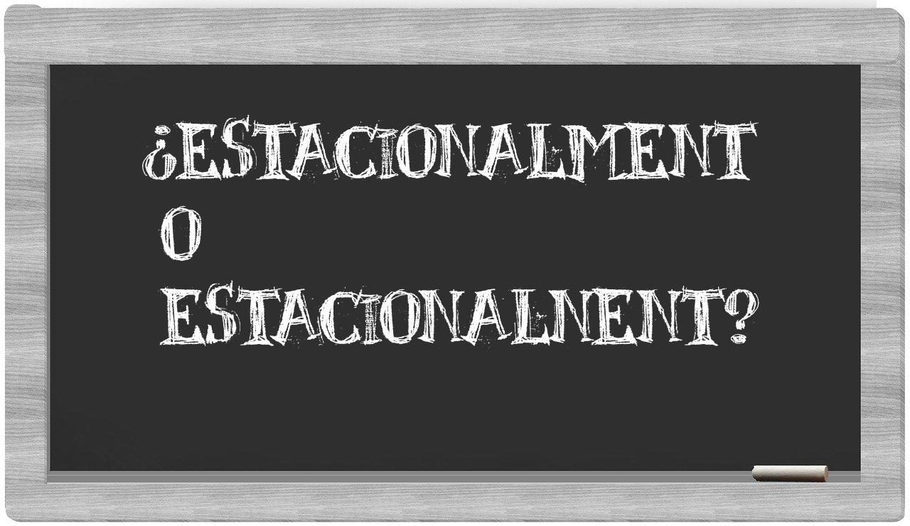 Cuando se presenta la comparación entre los términos estacionalment y estacionalnent, no deberías vacilar ni un instante, puesto que únicamente estacionalment se encuentra adecuadamente escrita. Por otra parte, estacionalnent no figura en el Diccionario de la Real Academia Española.