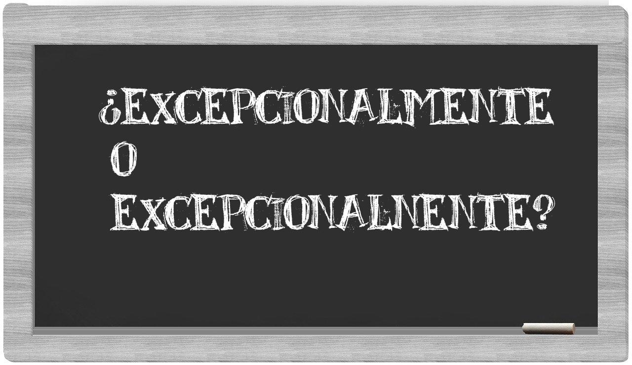 Cuando se presenta la selección entre los términos excepcionalmente y excepcionalnente, la decisión debe ser clara e inmediata, puesto que únicamente excepcionalmente cuenta con la correcta forma escrita. Por otro lado, excepcionalnente no se encuentra registrado en el Diccionario de la Real Academia de la Lengua.
