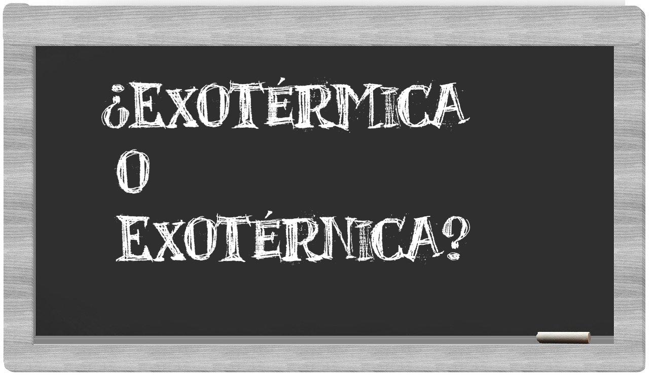 Cuando se trata de la distinción entre exotérmica y exotérnica, la elección es clara y evidente, pues únicamente exotérmica es la opción que se encuentra debidamente registrada en el léxico oficial de la Real Academia. Por el contrario, exotérnica no figura en su repertorio de términos aceptados.