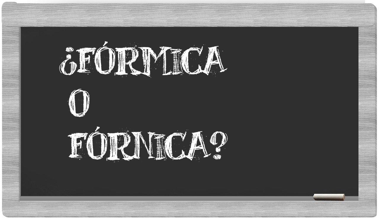 Cuando se trata de la distinción entre fórmica y fórnica, la elección debería ser evidente, dado que solamente fórmica es la forma adecuada en nuestro idioma; por otro lado, fórnica no tiene cabida en el Diccionario de la Real Academia Española.