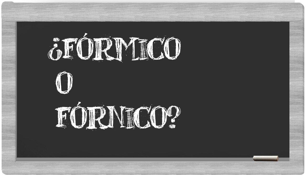 En lo que respecta al uso de fórmico en contraposición a fórnico, no hay motivo para la incertidumbre, puesto que solo fórmico se encuentra debidamente documentada en el Diccionario de la Real Academia Española, mientras que fórnico carece de reconocimiento en este prestigioso repertorio léxico.