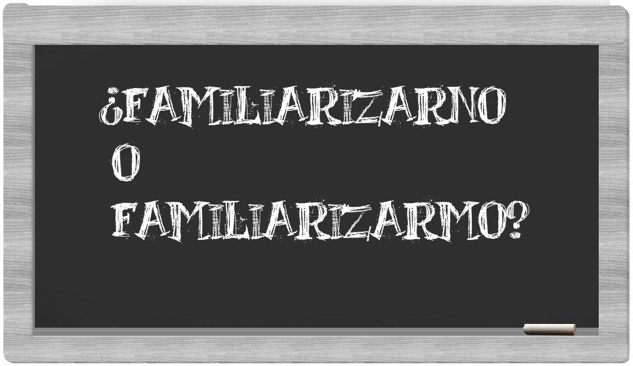 Cuando se trata de la elección entre familiarizarno y familiarizarmo, no debería caber la menor incertidumbre, puesto que es únicamente familiarizarno la que se encuentra registrada de manera adecuada. Por otro lado, familiarizarmo no figura en el Diccionario de la Real Academia Española.
