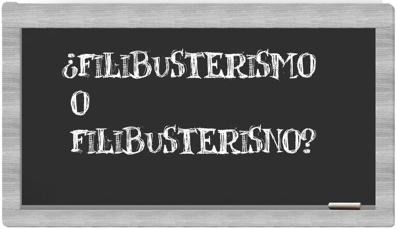 Cuando se presenta la disyuntiva entre filibusterismo y filibusterisno, no hay lugar para la incertidumbre, pues únicamente filibusterismo se encuentra adecuadamente redactada; por su parte, filibusterisno no figura en el prestigioso Diccionario de la Real Academia Española.