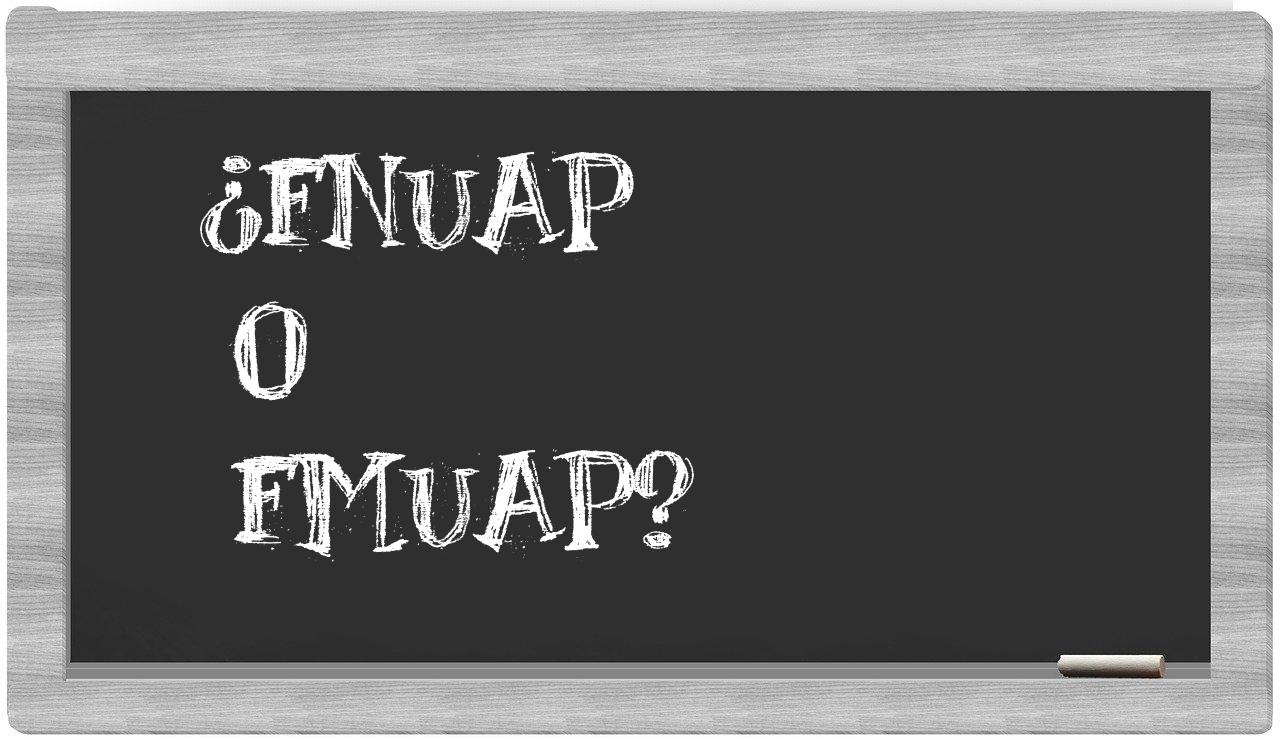 Cuando te encuentres en la situación de elegir entre fnuap y fmuap, no vaciles ni un instante, ya que solo fnuap es la opción correcta; lamentablemente, fmuap no figura en el Diccionario de la Real Academia Española.