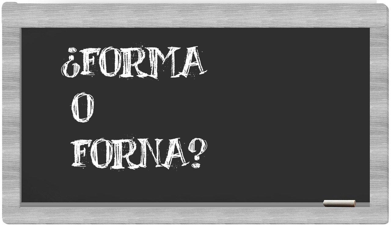 Cuando se presenta la selección entre los términos forma y forna, la decisión debe ser clara e inmediata, puesto que únicamente forma cuenta con la correcta forma escrita. Por otro lado, forna no se encuentra registrado en el Diccionario de la Real Academia de la Lengua.