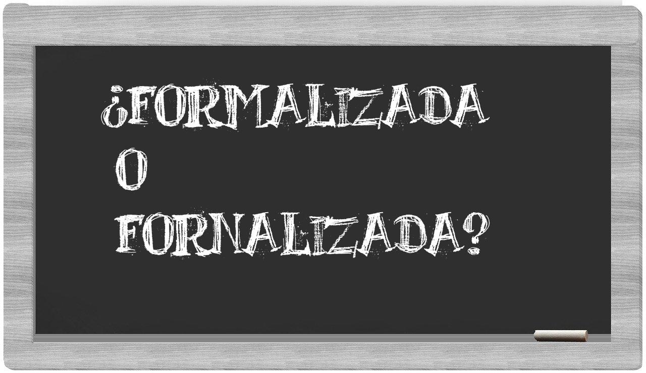 Cuando se trata de las expresiones formalizada y fornalizada, la elección es evidente, puesto que solo formalizada es la opción que se encuentra validada y aceptada, mientras que fornalizada no se encuentra registrada en el Diccionario de la Real Academia Española.
