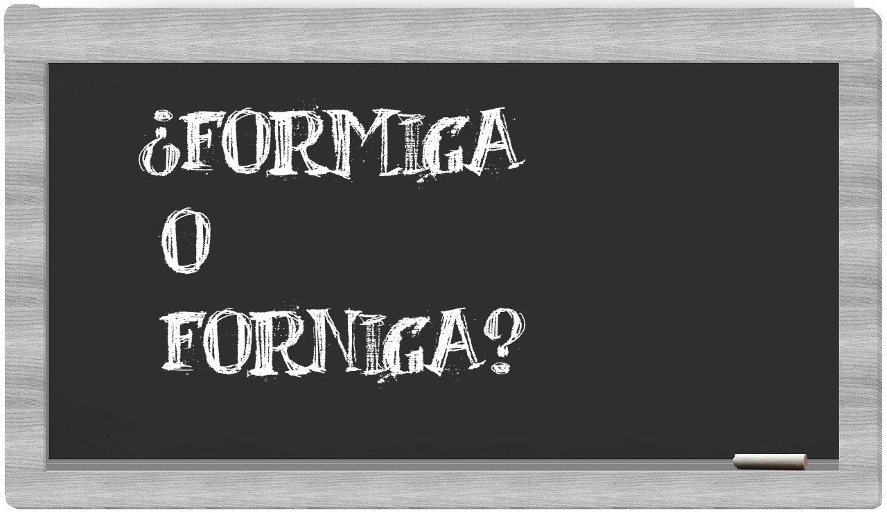 En la situación particular que enfrenta la combinación de formiga y forniga, no deberías titubear, puesto que únicamente formiga se encuentra registrada correctamente, mientras que forniga carece de reconocimiento en el Diccionario de la Real Academia Española.