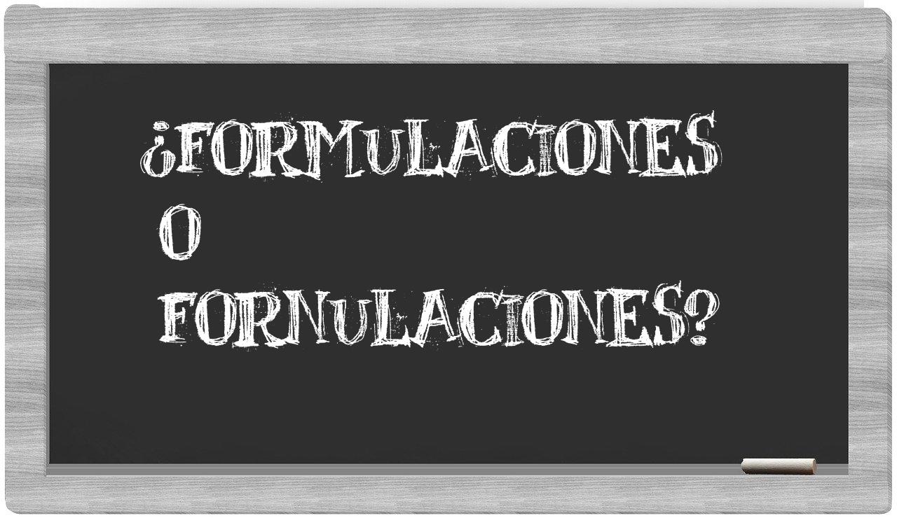 Cuando te encuentres en la situación de elegir entre formulaciones y fornulaciones, no vaciles ni un instante, ya que solo formulaciones es la opción correcta; lamentablemente, fornulaciones no figura en el Diccionario de la Real Academia Española.