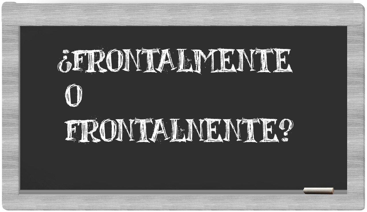 Cuando te enfrentes a la elección entre frontalmente y frontalnente, no permitas que la incertidumbre te abrume, pues únicamente frontalmente es la forma adecuada. Recuerda que frontalnente no se encuentra en el prestigioso Diccionario de la Real Academia Española.